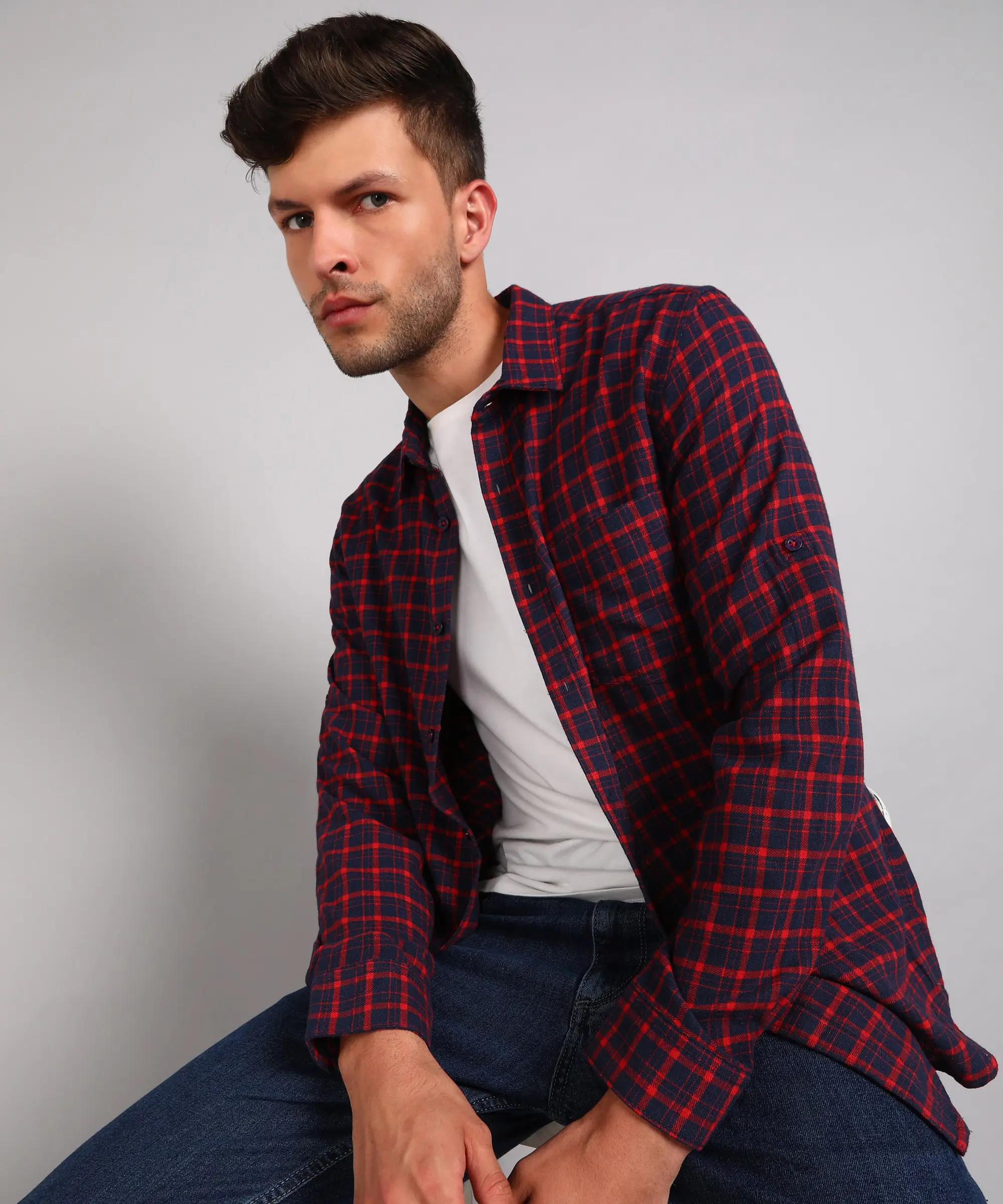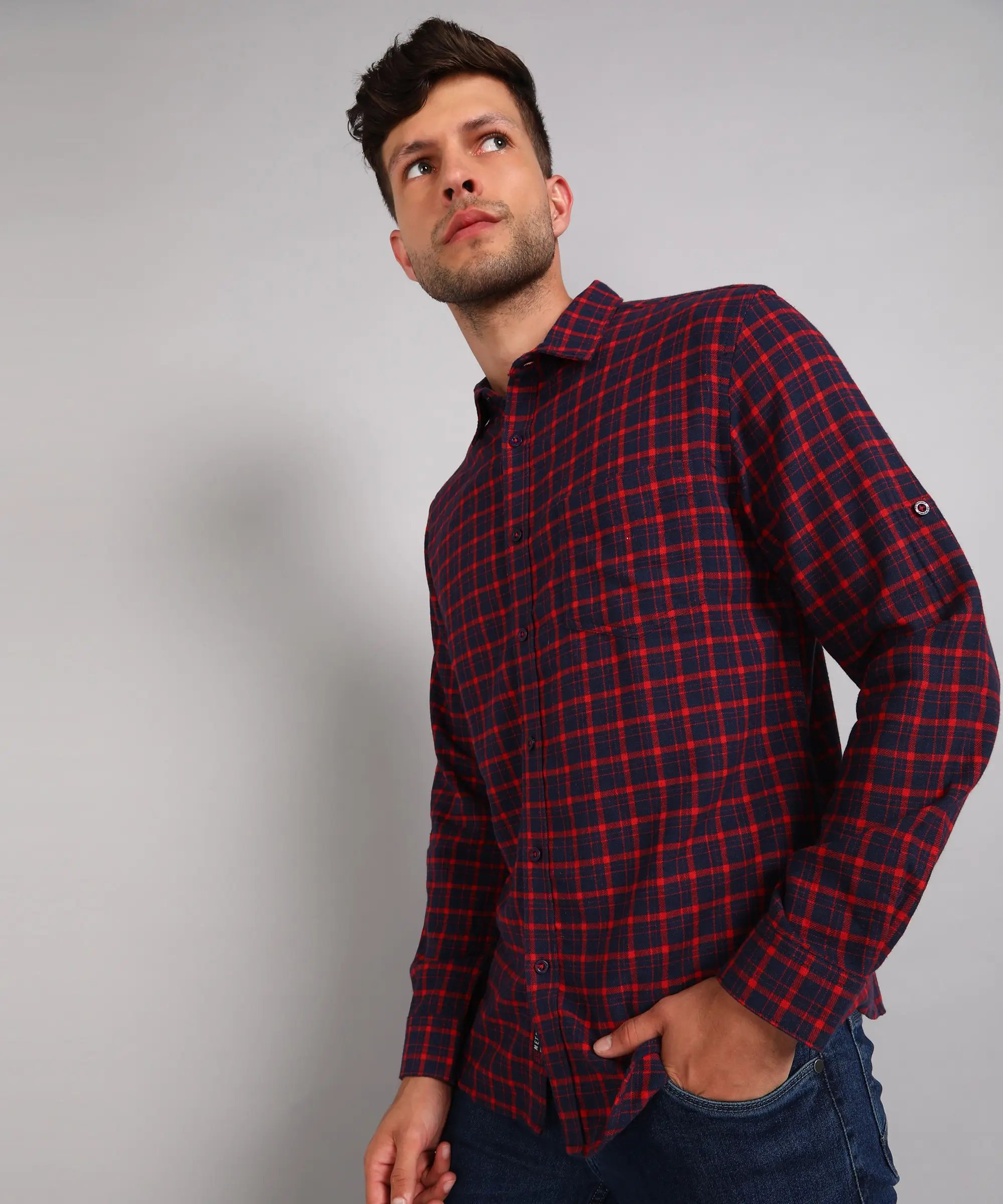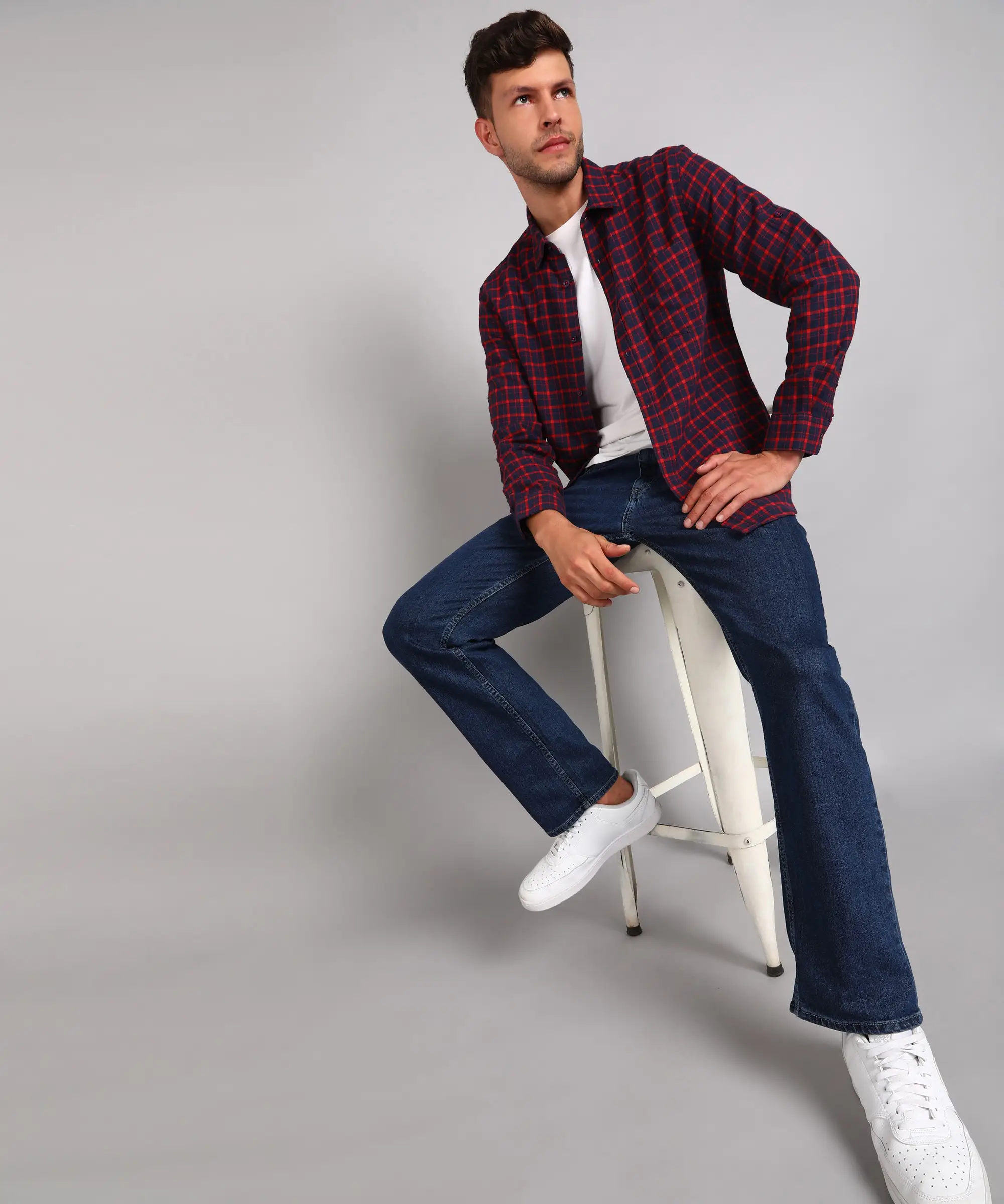 Metronaut Men Slim Fit Checkered Spread Collar Casual Shirt