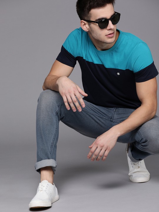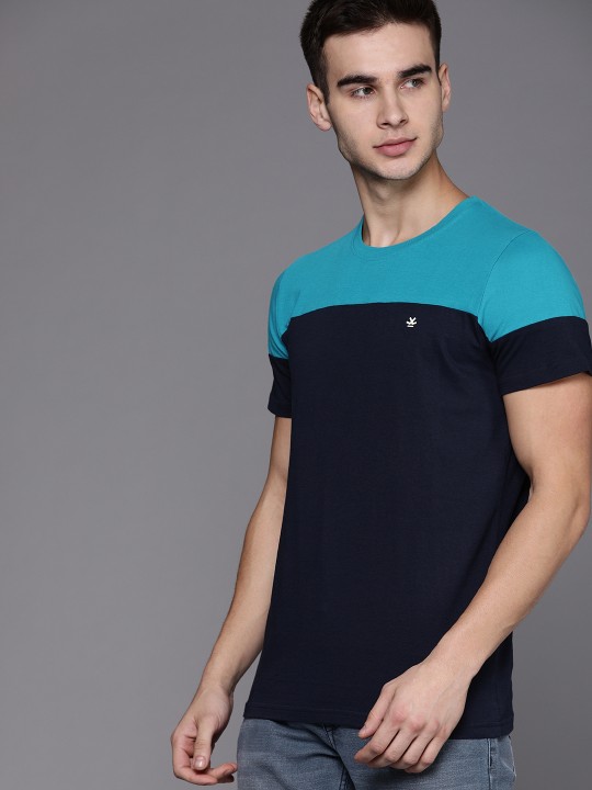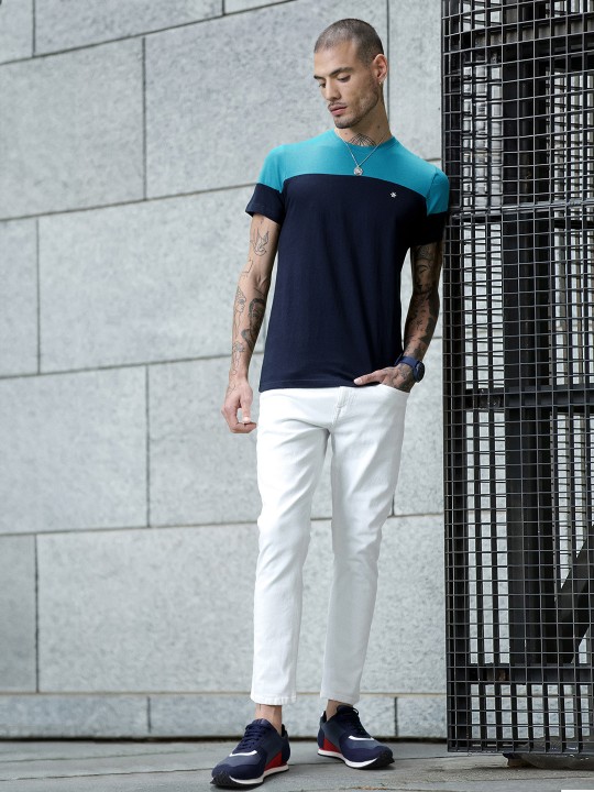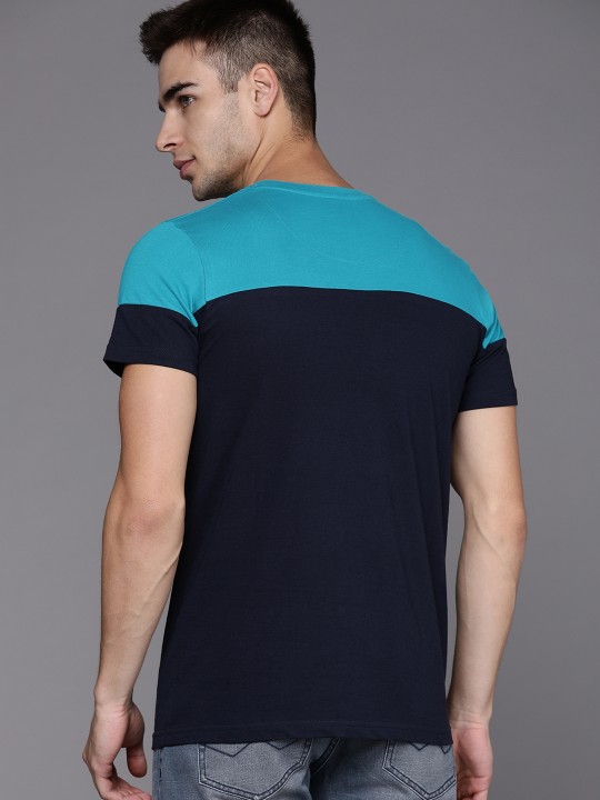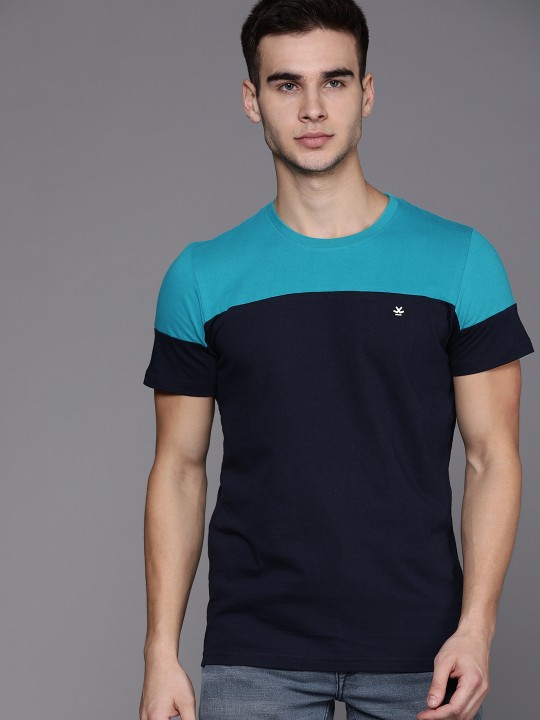Wrogn Men Slim Fit Color blocked Round Neck Pure Cotton T-shirt