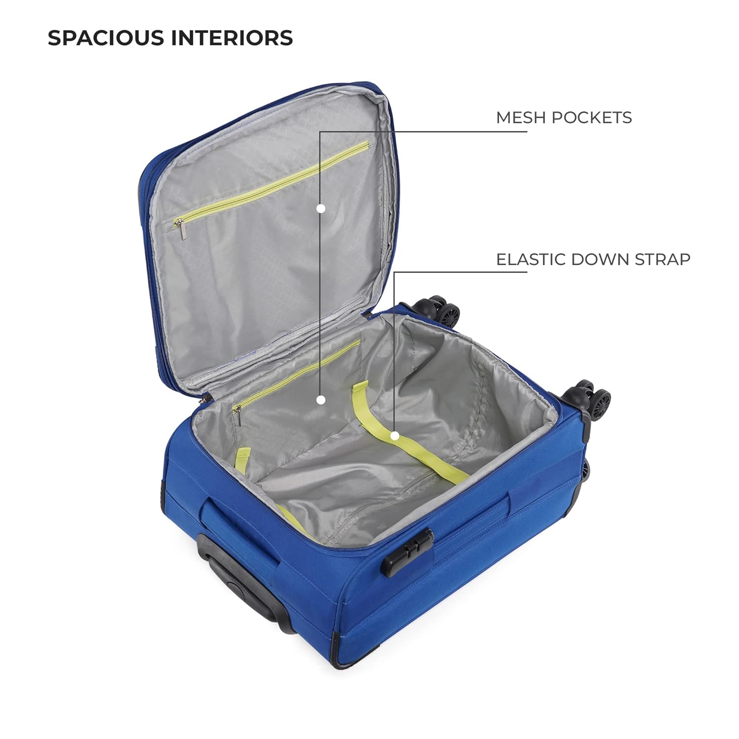 - Eight 360-degree spinner wheels ensure smooth-rolling mobility in any direction.