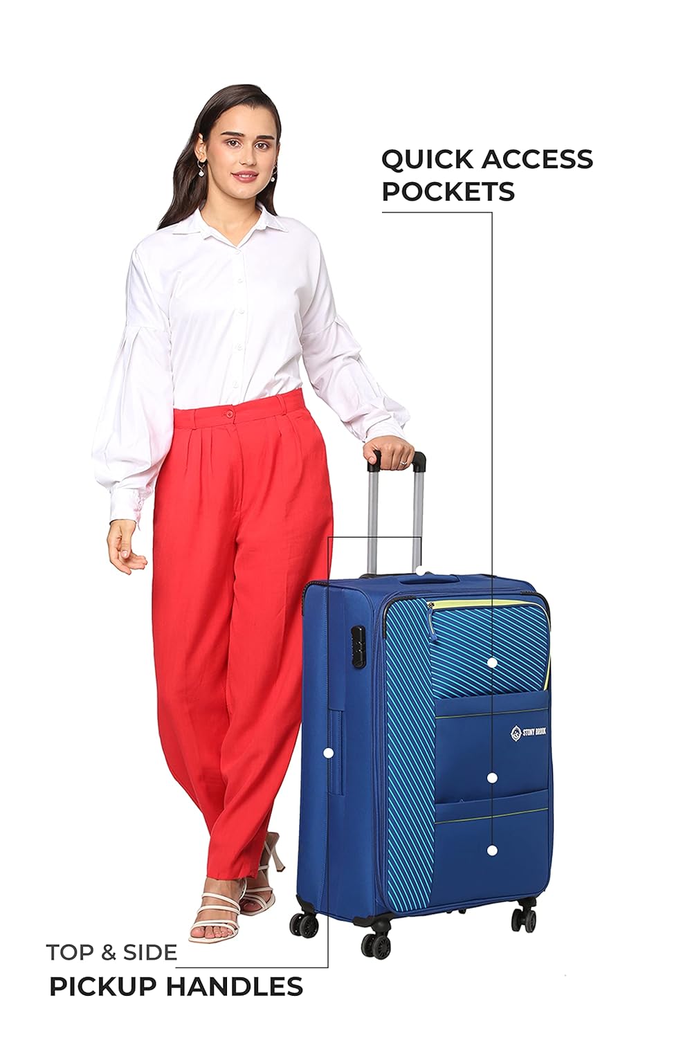 - Soft side luggage made up of Polyester material.