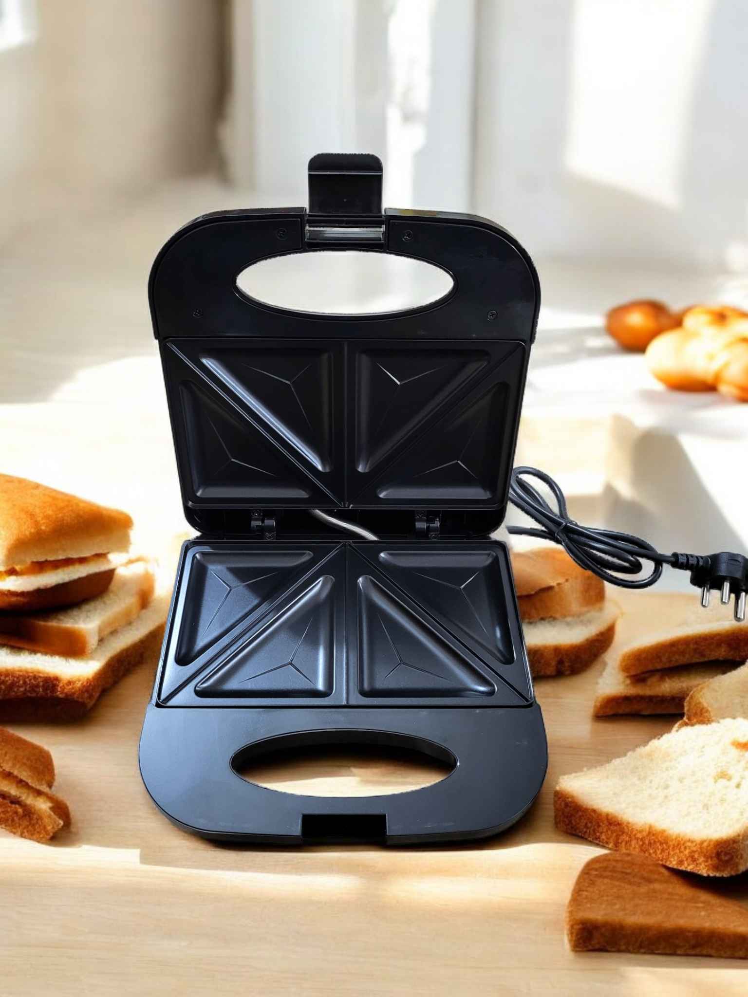 Efficient 750-watt heating for quick and even toasting. Features non-stick plates for easy cleaning and cool-touch handle for safety. Perfect for making delicious sandwiches effortlessly.