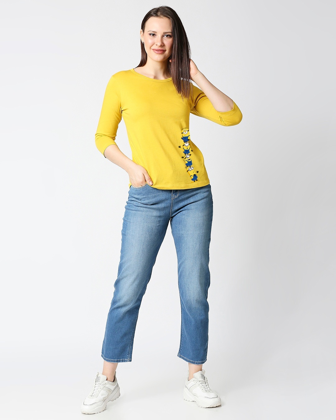 Flex your love for the Minions with this cute Minion Hill Women Printed 3-4th Sleeve T-shirt.