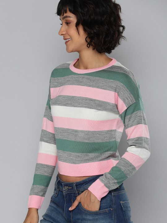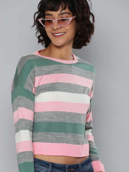 Look your absolute best in a super-stylish sweater by HERE&NOW. When you're going to the movies, pair this grey piece with your favourite pair of trim denims and a cute tote.