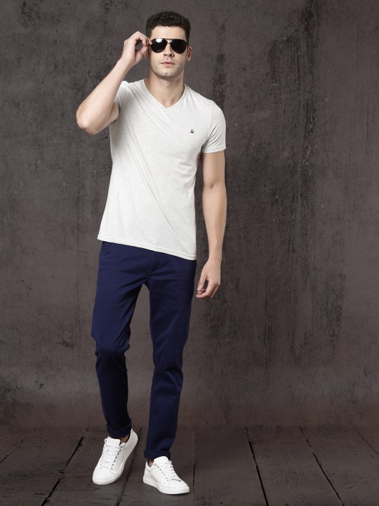 Designed by Roadster, these top-notch chinos are ready to amp up your style game. Lounge around the house or grab a quick bite to eat when you team this navy blue pair with a basic v-neck tee and comfortable slip-on shoes.
