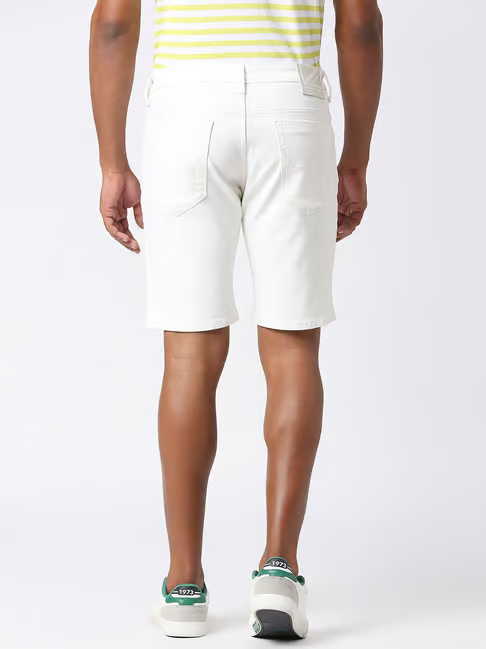 Spend your Sunday outings in your naturally carefree yet stylish element with this awesome pair of white denim shorts from the house of Pepe Jeans. Finely tailored in premium stretch cotton for unmatched flexibility and a soft yet enduring shell replete with superb comfort, their well cut skinny fit design accords them snugness and a young, dynamic look . Pair them with a polo t-shirt and boat shoes to step out in