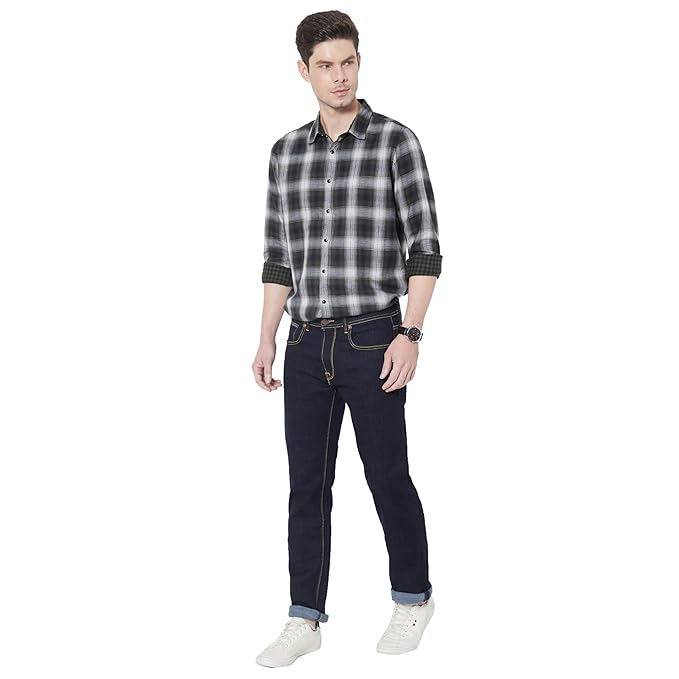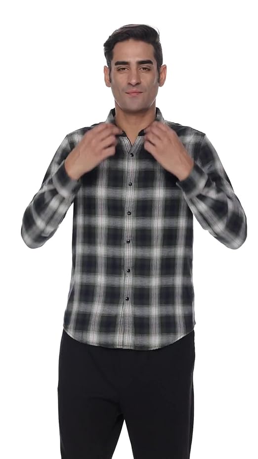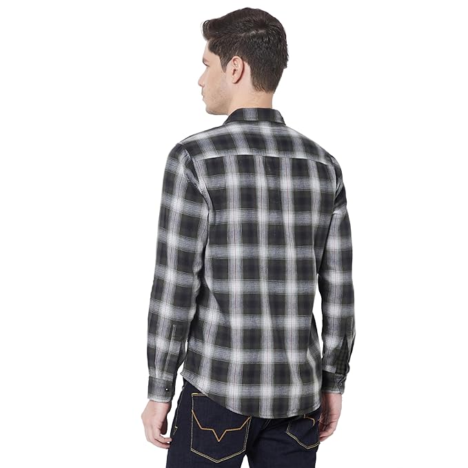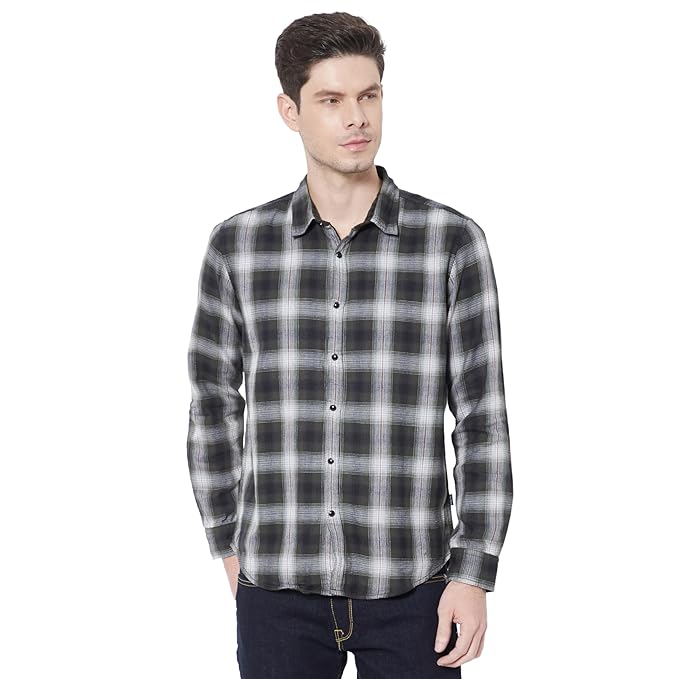 Yarn dyed reversible double cloth checks shirt, regular fit, long sleeve and branding detail at side seam and sleeve placket.