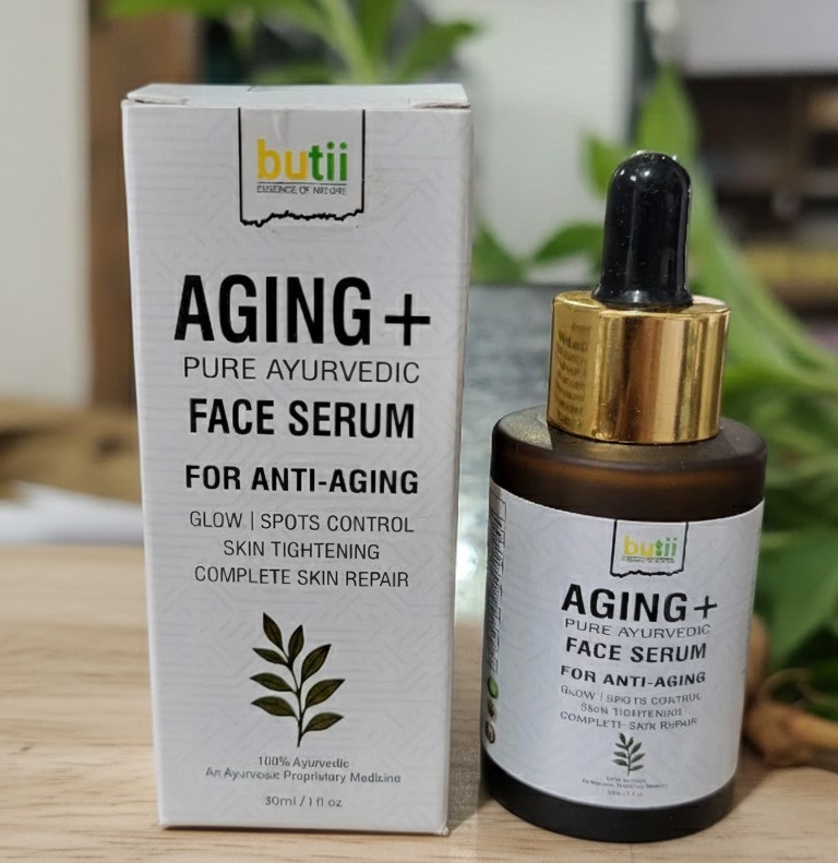Butii Aging+ Pure Ayurvedic Face Serum (30 ml) is an advanced skincare serum formulated with pure ayurvedic botanicals to help nourish, rejuvenate, and protect your skin. Designed to target early signs of aging, this lightweight serum absorbs quickly to deliver deep hydration and potent natural actives that support firmer, smoother, and more youthful-looking skin.
