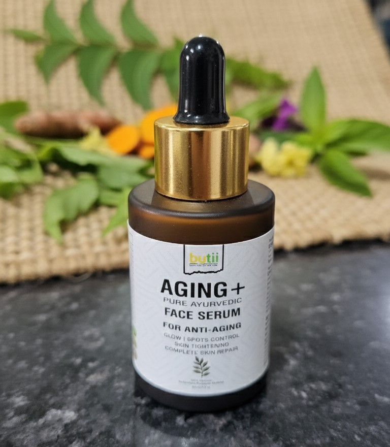 Make Butii Aging+ Pure Ayurvedic Face Serum a part of your daily skincare routine to help maintain a brighter, healthier, and more resilient complexion.